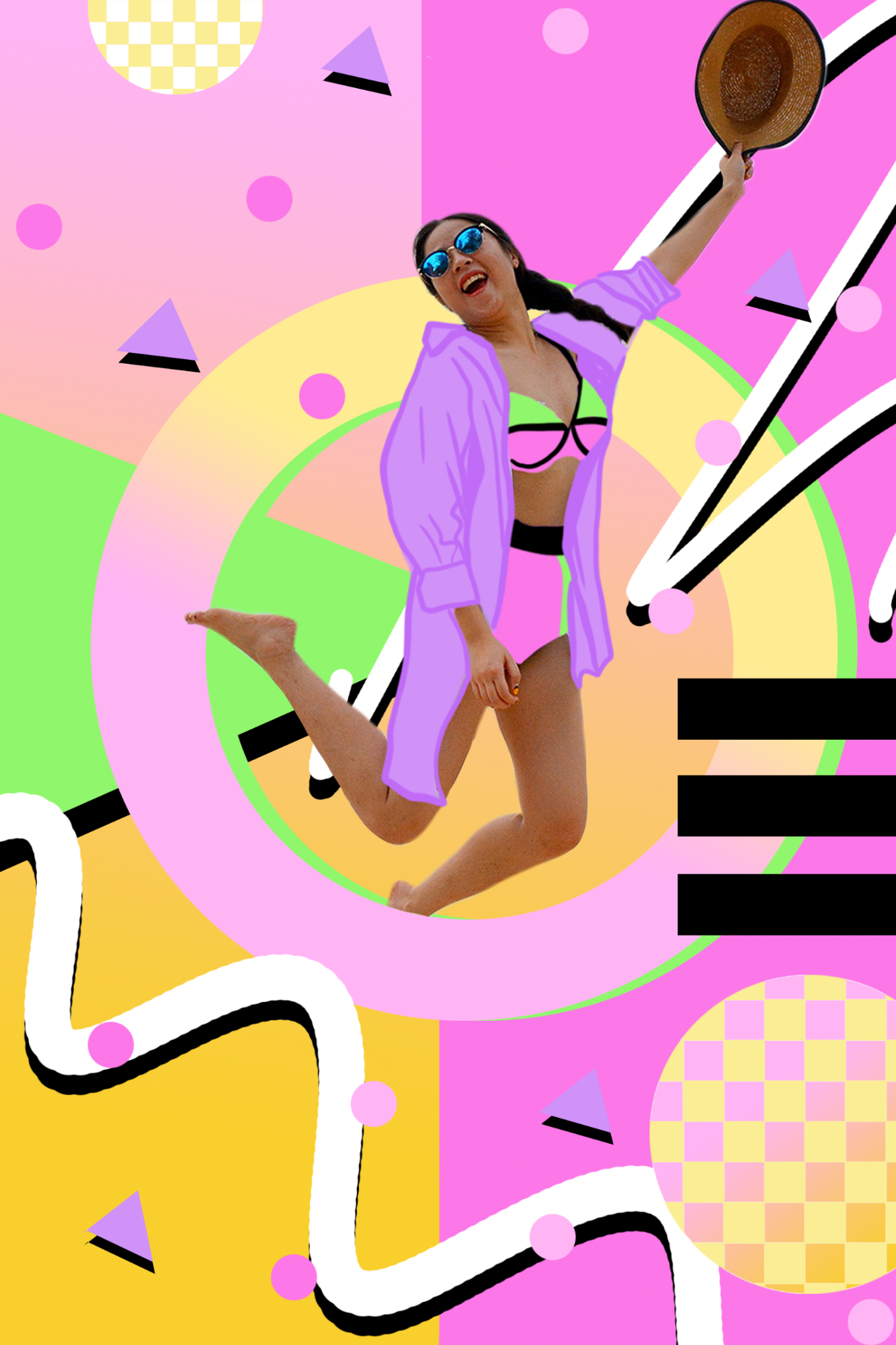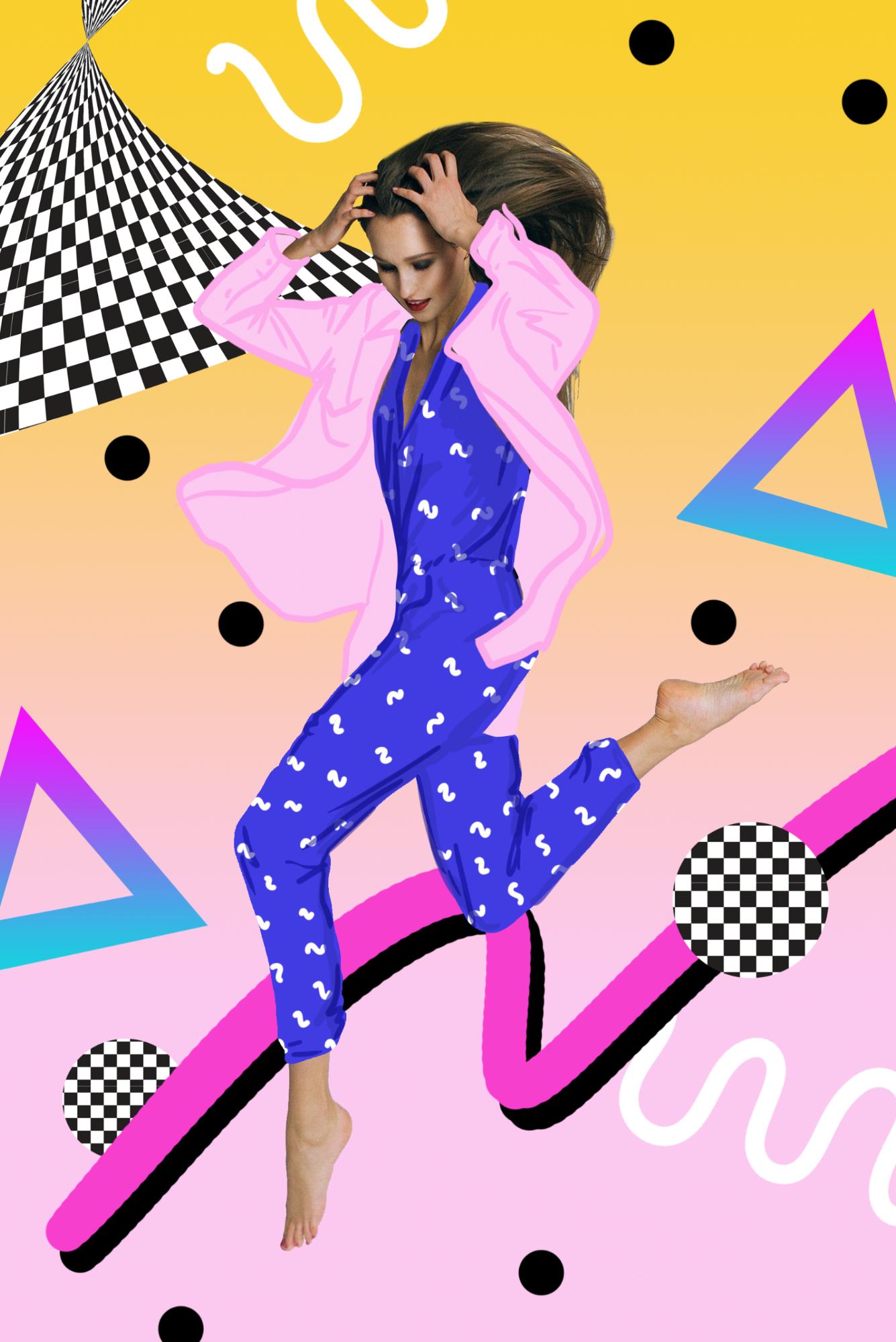 Promotional campaign for an apparel company reflecting the highly influential design movement from the 80s by the Memphis Milano design group, 80s pop fashion, art and music.